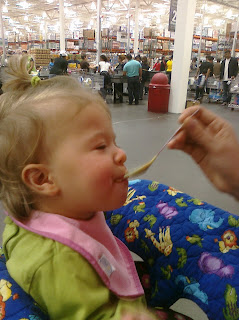 (Since tooth #6 came through this week, Maya hasn't been eating well, so we needed to pick up some of her favorite baby food, Apple-Turkey-Cranberry. Three stores later we finally found it, so we bought 21 jars. Plus a bunch of other food. Yum.)