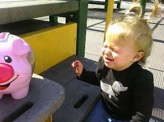 MOMMY! I can NOT BELIEVE that you just fed my coin to the PIGGY instead of giving it back to ME! I am so MAD! MAD! MAD! MAD! I'm just going to sit here and cry :(