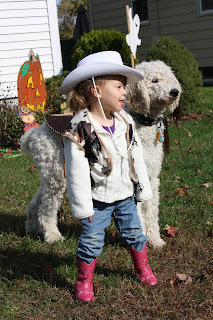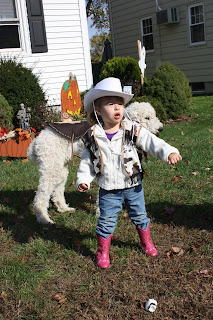 For Halloween I got to be a Happy Cowgirl, and Parker got to be a Mostly Miserable (but Considerably Compliant) Horse. With an amazing home-made saddle that my mom will be sure to post a close-up picture of soon.
