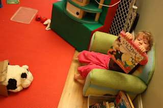 Side note: Tickle Me Elmo was the "it" toy, like, 4 years ago I think. And I never got the hype. But once you hang out with him, you get it. Dave and I were just nodding solemnly at each other, saying things like, "Wow. Tickle Me Elmo is totally cool." (nod, nod, Maya giggles and gasps for air) "Yeah, I totally get why he was so popular" (nod, nod, Maya falls over laughing)