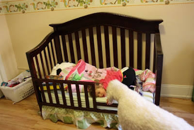 Since this meeting we’ve had some changes, big and small. She moved into the big girl bed (which was planned pre-meeting, but the timing was fortuitous). She’s putting her coat on (with help) and taking it off. She’s learning to climb into her stroller, and I’m encouraging her to climb onto the couch with me (Encouraging to climb? Madness!). She pulls her pants up and down (mostly) and we’re doing more verbal prompts to eat before offering assistance. I’m trying to look at her with fresh eyes instead of seeing the little girl that I’m used to doing so much for.
