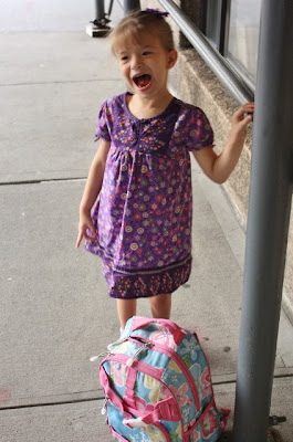 Bus aside, the school year is off to a great start. Maya loves her new class, which is a bit larger and has less adult helpers . . . I was a little bit nervous about the transition, but she's doing great. I thought that she might try to run away to her old class, but she hasn't---an aide even took her there to visit and say hi, and she left without a peep when it was time to go.