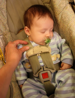 The site I posted earlier included this video---a (really) easy way to make the BundleMe completely car seat safe---and still snuggly warm. First, I tightened up Will's straps.