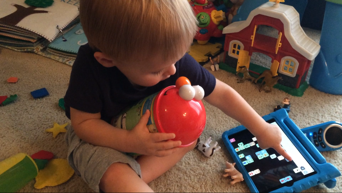 Mirabel (age 3) using Speak for Yourself with help from her 5 month old sister.