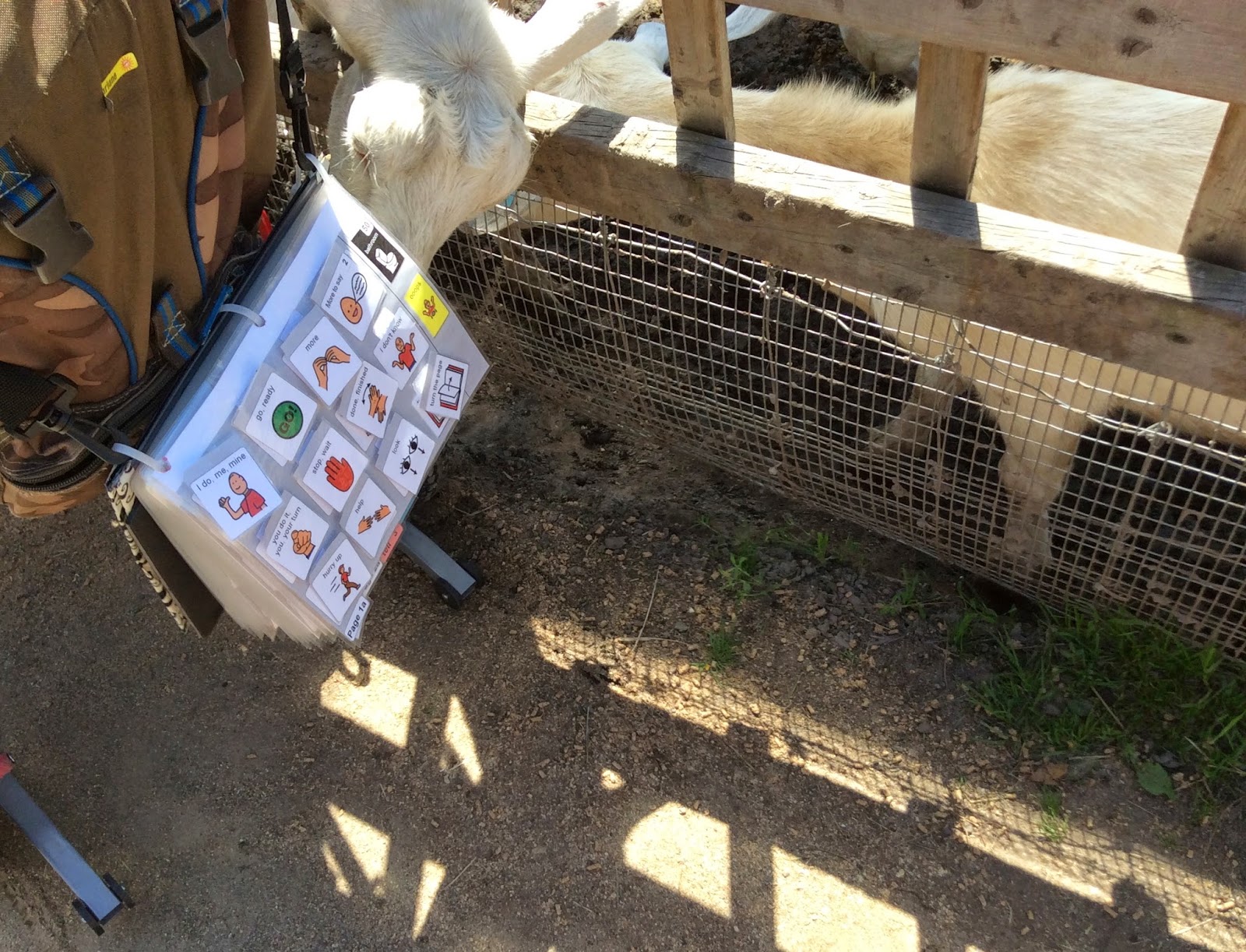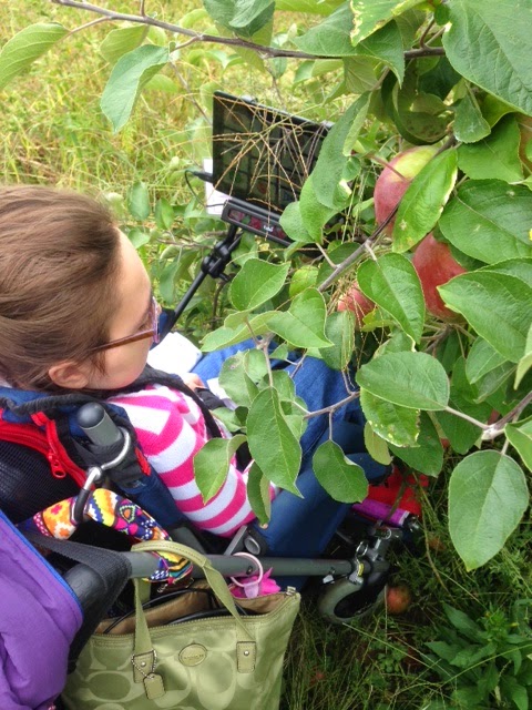 For next week's AAC family post, I've got an idea for a theme: I'd love to see pictures of AAC users out of their homes! Let's show how we travel with AAC, how AAC goes everywhere---to the grocery store, playing in the backyard, in the car, at school, etc. Anywhere that's not in your home! Therapists/professionals-show off your offices/classrooms/gyms (that have AAC present or AAC bulletin boards, etc).