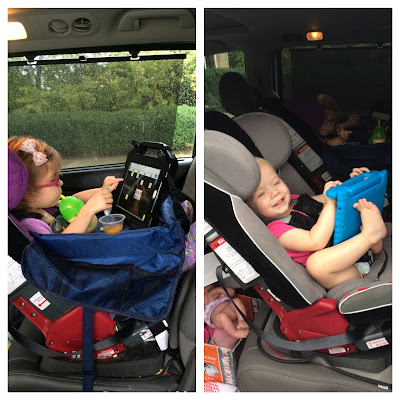 Mirabel, age 4, eating a quick lunch between therapies and using Speak for Yourself. Her little sister (17 months) demands a talker too and uses SfY on the mini.