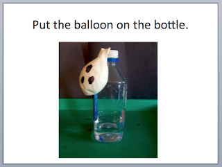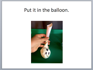 I made a quick book to go with this activity. The photos show a pretty clear sequence of steps, although you may want to customize the pages (e.g., take out the index card page if you're not using it) and/or the text. For the sample book, I used simple sentences and repeated some core words (e.g., need, get, put, it, in, look) . . . but this activity could be easily used to target a number of goals and a wide range of vocabulary. The book has been uploaded as a (free) powerpoint file, so you can easily modify the text on each page, or add/delete pages.